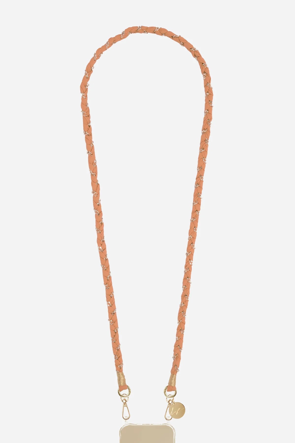 Doha long chain, 120 cm, ochre fabric and gold chain with gold snap hooks
