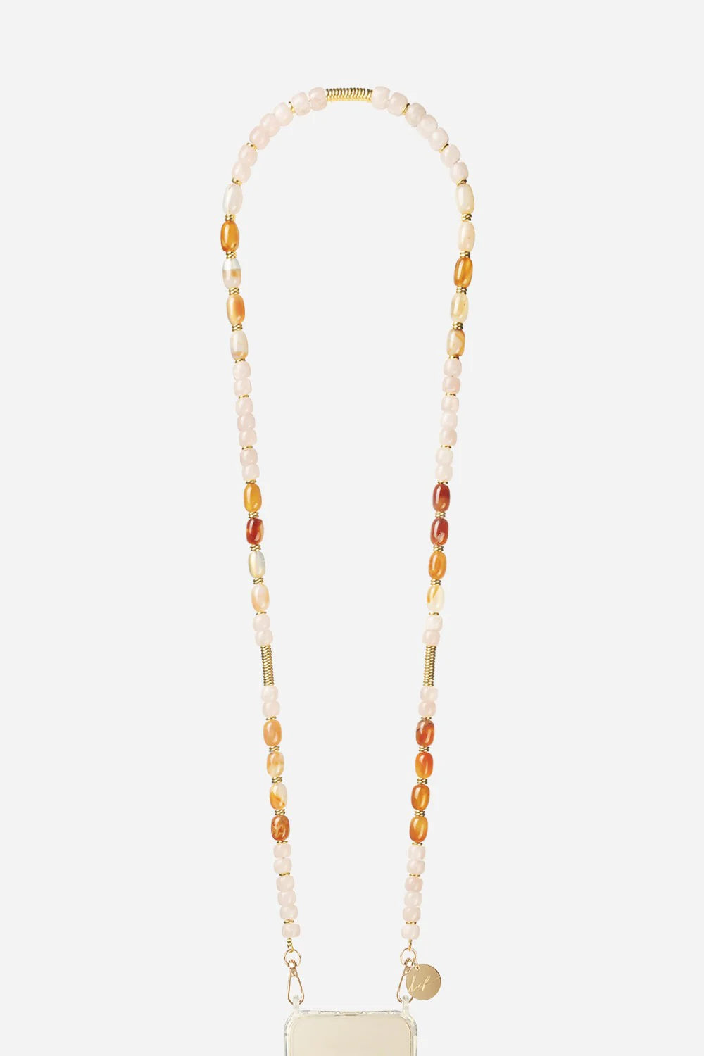 Ivy jewelry chain with golden carabiners of 120 cm semi-precious pink and brown pearls
